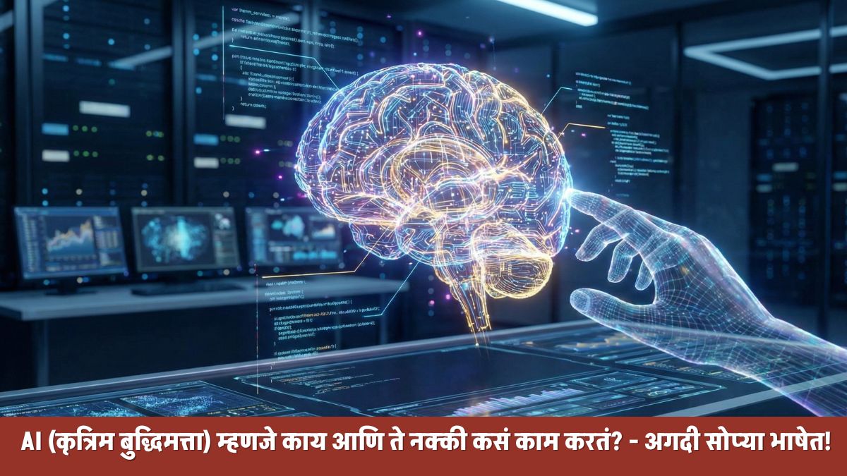 आजकाल तुम्ही बातम्यांमध्ये, मोबाईलवर किंवा मित्रांच्या गप्पांमध्ये ‘AI’ हा शब्द नक्कीच ऐकला असेल. अनेकांना वाटतं की AI म्हणजे काहीतरी जादू आहे किंवा सिनेमात दाखवतात तसे रोबोट्स आहेत जे जग बुडवणार आहेत! पण मित्रांनो, घाबरून जाण्यासारखं काहीच नाही. AI हे एक अस तंत्रज्ञान आहे जे आपलं काम सोपं करण्यासाठी बनवलं गेलं आहे. चला तर मग, अगदी सोप्या मराठीत समजून घेऊया की हे AI नक्की काय प्रकरण आहे.